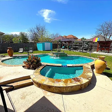 Welcome to the Elite Vacation Entertainment Villa San Antonio, a luxurious retreat that seamlessly blends comfort with convenience. Nestled just 10 kilometers from the San Antonio International Airport, this exquisite villa serves as an ideal sanctuary for both leisure and business travelers. Its proximity to the Southern Pacific Passenger train station, only 16 kilometers away, ensures effortless access to the vibrant city and its many attractions.